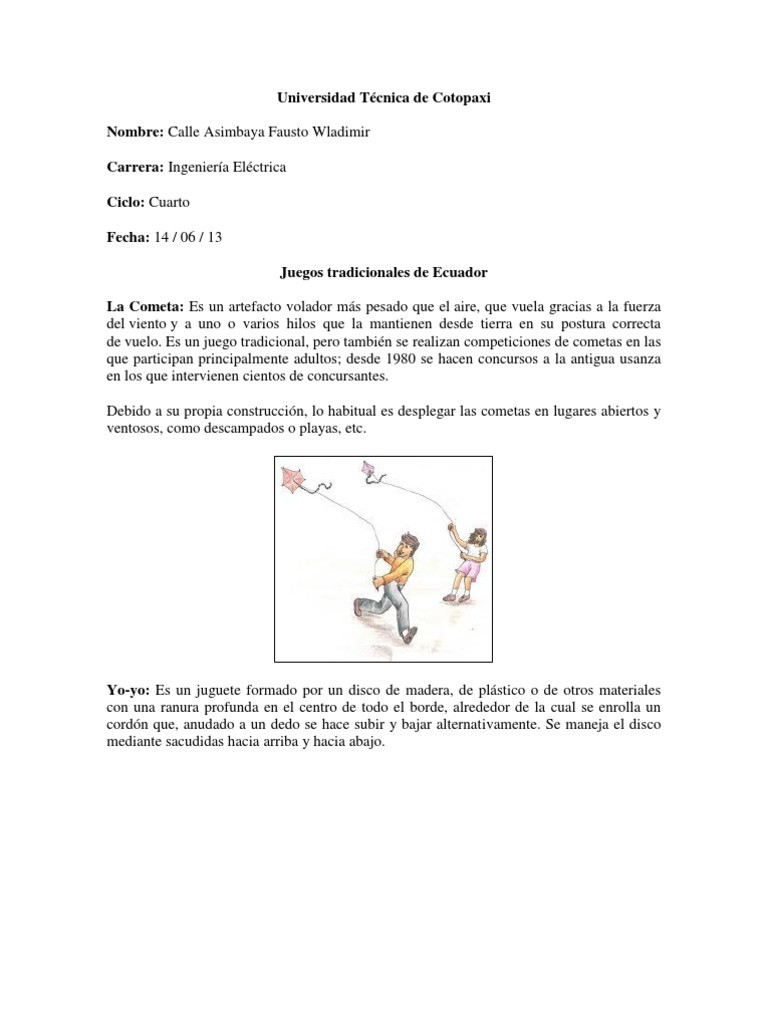 Caracterstico de los aos 60 y 70, cuando los nios y jvenes lo practicaban en los colegios. Juegos tradicionales de nuestro ecuador. Una selección de juegos tradicionales para niños y niñas. Juegos tradicionales del ecuador by universidad israel 284948 views. Desde 1980 se hacen concursos a la antigua usanza en los que intervienen cientos de concursantes.